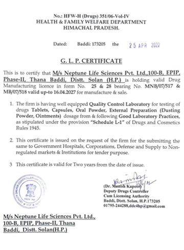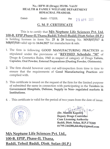 Neptune Life Sciences Pvt. Ltd. is a reputed concern engaged in manufacturing a wide range of quality pharmaceutical products. Our quality range of products are manufactured as per GMP standards and cater to all requisites in the core business activity of pharmaceutical formulations. We are committed to ensure a good health by providing quality medicines at affordable prices.